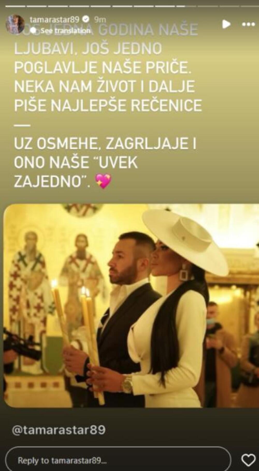 "Još jedna godina naše ljubavi, još jedno poglavlje naše priče. Neka nam život i dalje piše najlepše rečenice - uz osmehe, zagrljaje i ono naše 'uvek zajedno'", napisala je Tamara.