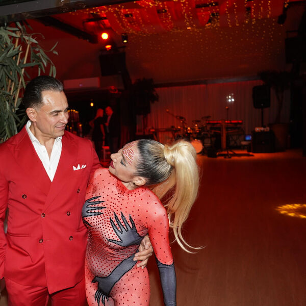 Dragan se uklopio sa Jovanom po stajlingu, pa je za ovu priliku odabrao elegantno crveno odelo i belu košulju.