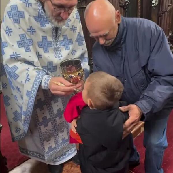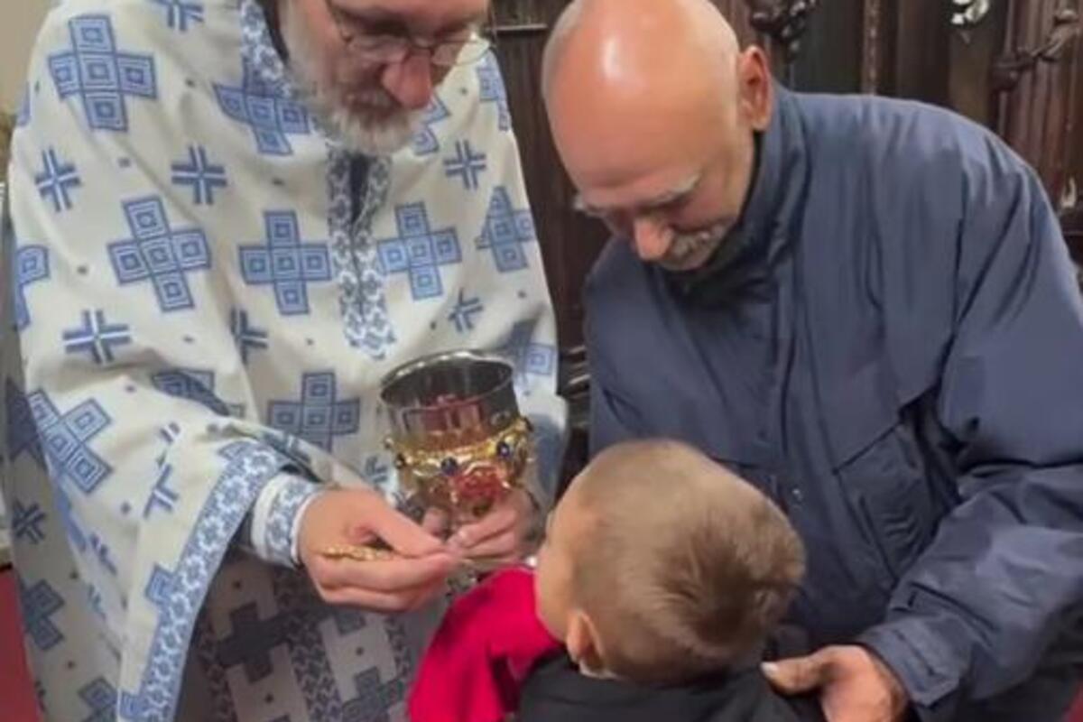 Ponosn otac objavio je slike iz crkve na kome je vidi mali Željko (5) prvi staje u red i prilazi svešteniku.
