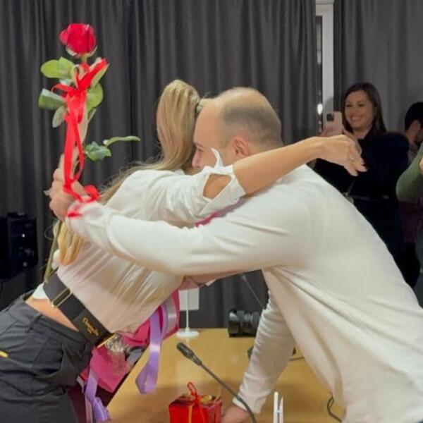 Pevačica je u Skoplje stigla dan ranije, u društvu supruga Ivana, kako bi se odmorila i pripremila za veliki nastup. Naravno da je naša kamera sve zabeležila! Ivan joj je, kao pravi džentlmen, otvorio vrata dok je izlazila iz automobila, a zatim i dopratio do sale.