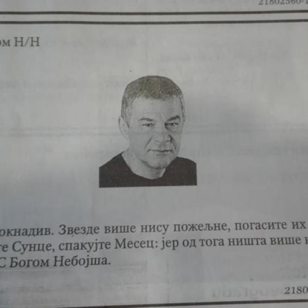 "Najpre, da nije vrednost samo ono što je materijalno i opipljivo, već ono što u sebi nosiš. Ljubav prema drugima, nesebičnost i plemenitost kao darove. A darovi se umnožavaju što ih više deliš. Nebojša ih je umnožavao, a vraćaju mu se i sada, danas, u sećanjima koja stižu na njegovu ovozemaljsku adresu. Ne samo iz Srbije i ne samo od Srba, već i od pripadnika drugih naroda iz čitavog sveta. To je dokaz njegove širine i poštovanje čoveka u pravom smislu te reči. Dokaz da njegova vera u dobrotu nije bila uzaludna. Da mu život nije bio uzaludan. A zašto je tako kratko trajao, to sami Bog zna", nastavio je glumčev otac ispovest.