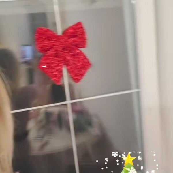 Džinovska crvena mašna zalepljena je na prozor, a oko slike na joj je veliki lav, a koju je voditeljka stavila iznad kreveta, stavljeni su posebni beli ukrasi i lampioni.