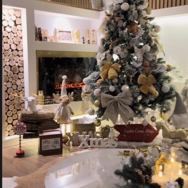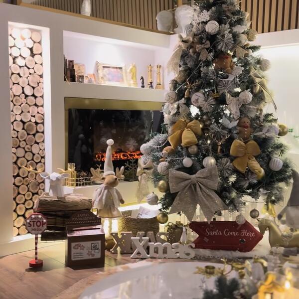 Njena dnevna soba zablistala je u znaku Nove godine, sa pažljivo dekorisanom jelkom i detaljima koji odaju utisak topline, elegancije i luksuza.