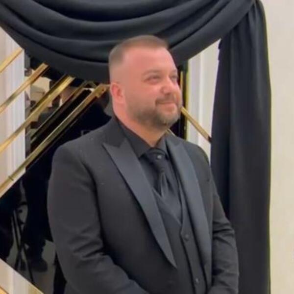 Harmonikaš Borko Radivojević bio je odmeren i sofisticiran u crnom odelu klasičnog kroja, uz crnu košulju i kravatu, čime je zadržao diskretan, ali autoritativan izgled. Njegov stajling savršeno se uklopio u svečanu atmosferu događaja.