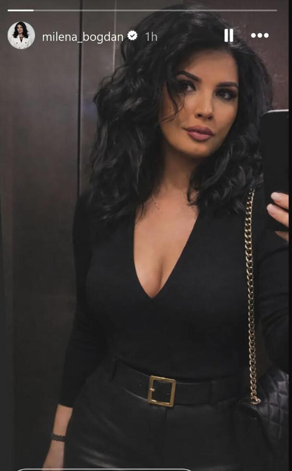 Milena je na sebi imala crnu bluzu koja prati liniju tela i crne kožne pantalone dubokog struka, upotpunjene kaišem. Pored toga, bila je potpuno našminkana i sređena, što je odmah izazvalo brojne pozitivne komentare.