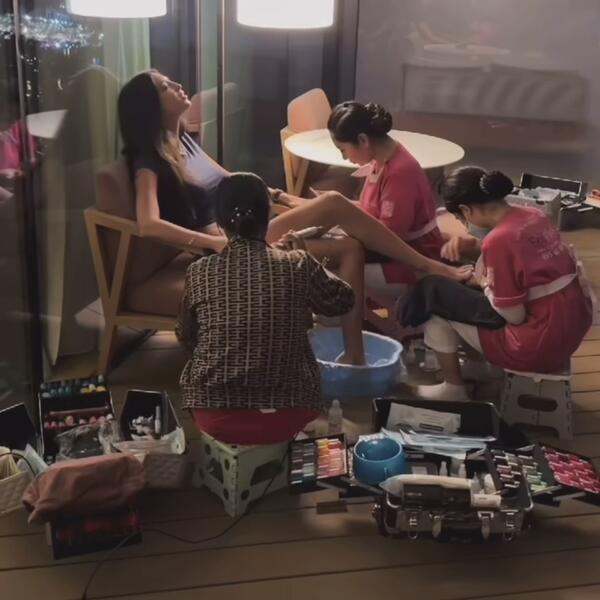Đina je pre samo nekoliko sati objavila snimak na kom je pokazala kako joj tri žene na terasi uslužno rade manikir i pedikir, a potom je kamera snimila i pogled sa terase.