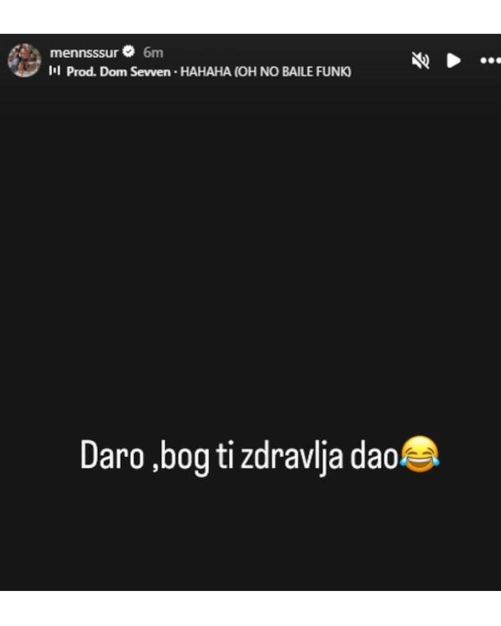 "Daro, Bog ti zdravlja dao!" napisao je Mensur u pet reči, uz emotikon koji se smeje.