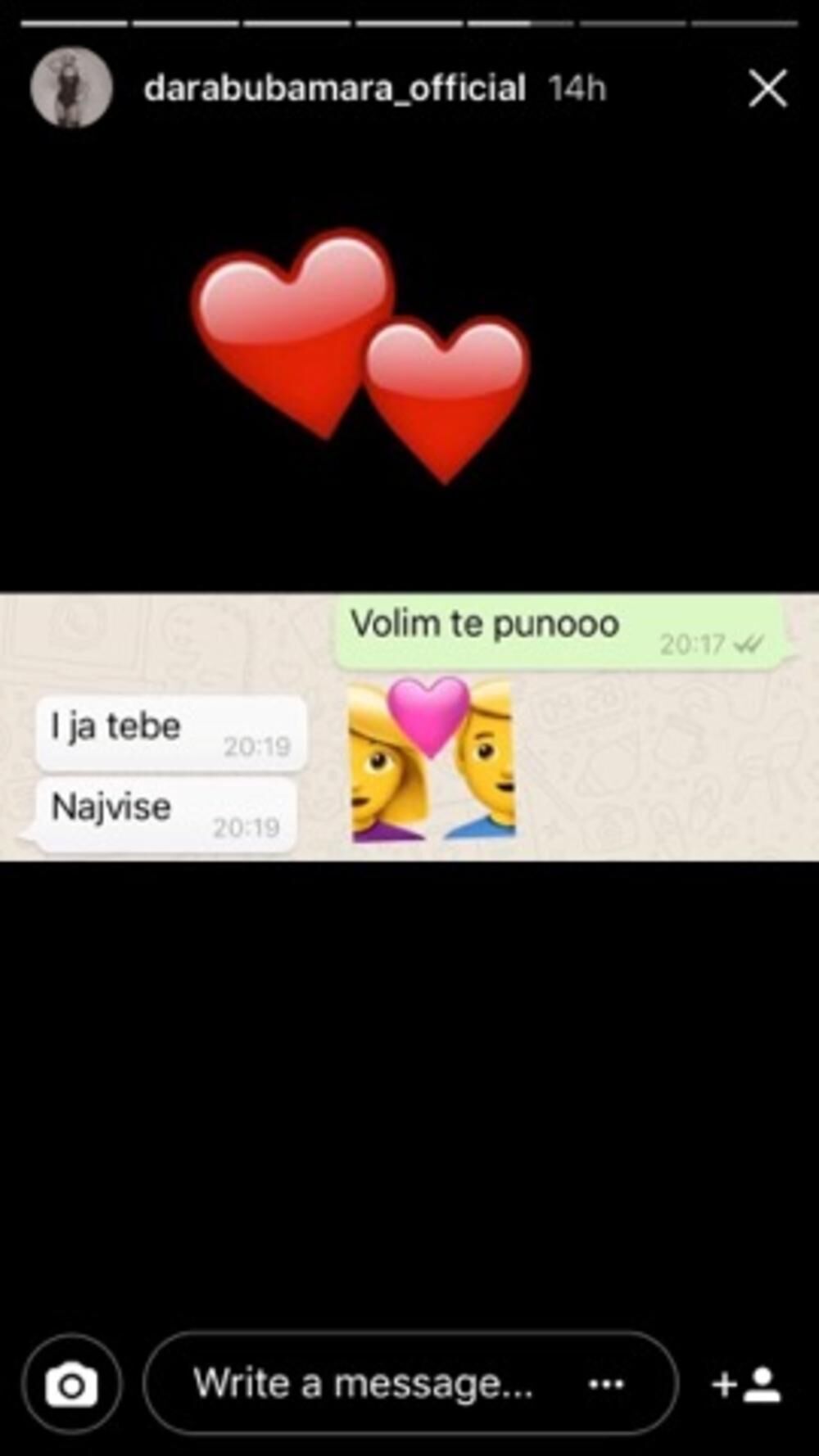 Na sve to Dara je napisala "Bože!! Koliko ga volim" i pokazala koliko je srećna.