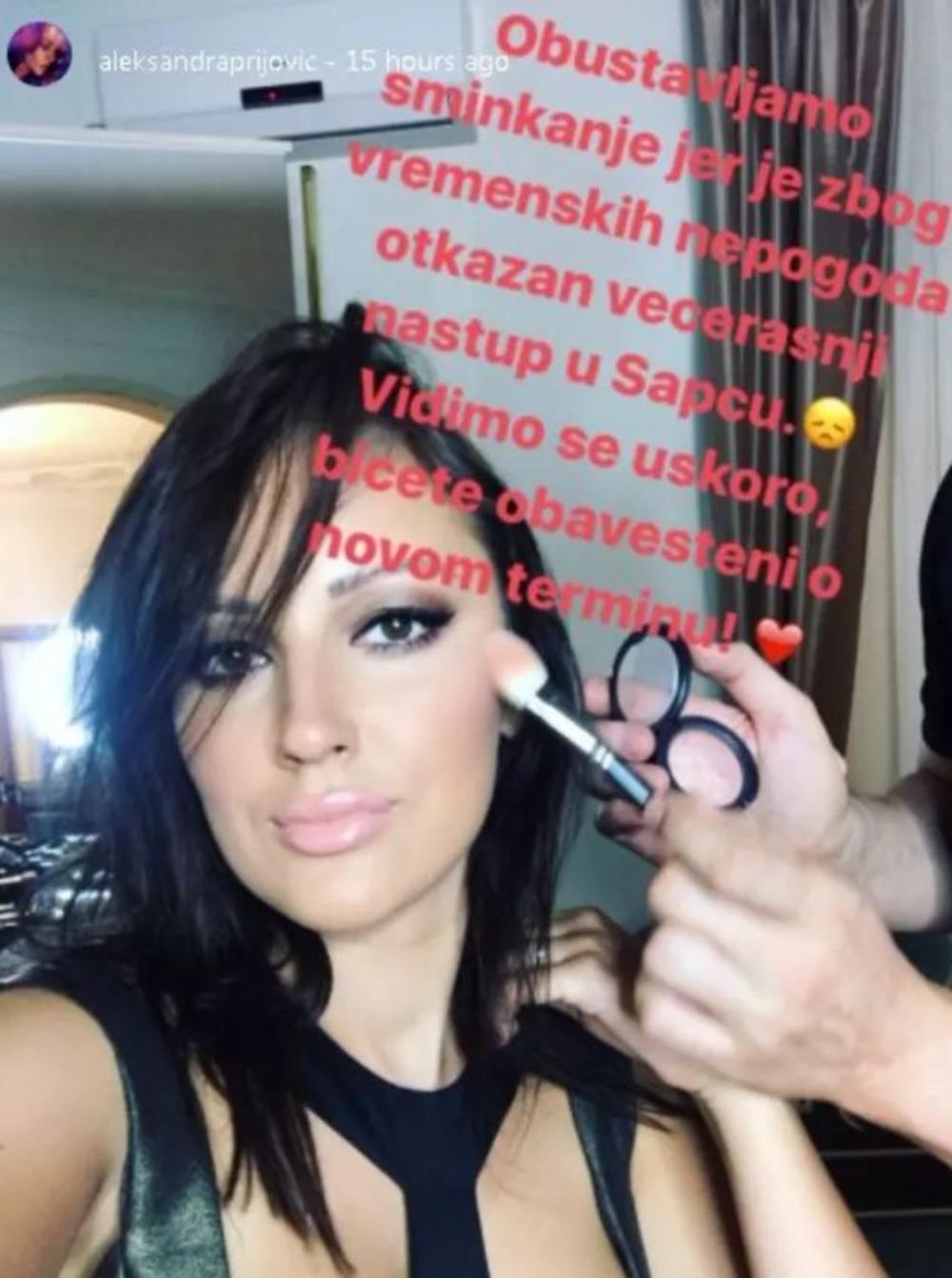 Naime, pevačica je trebalo da nastupi u Šapcu, a pripreme su uveliko u toku. Međutim, u sred šminkanja do Aleksandre su došle tužne vesti koje je odmah objavila na svom Instagram profilu.