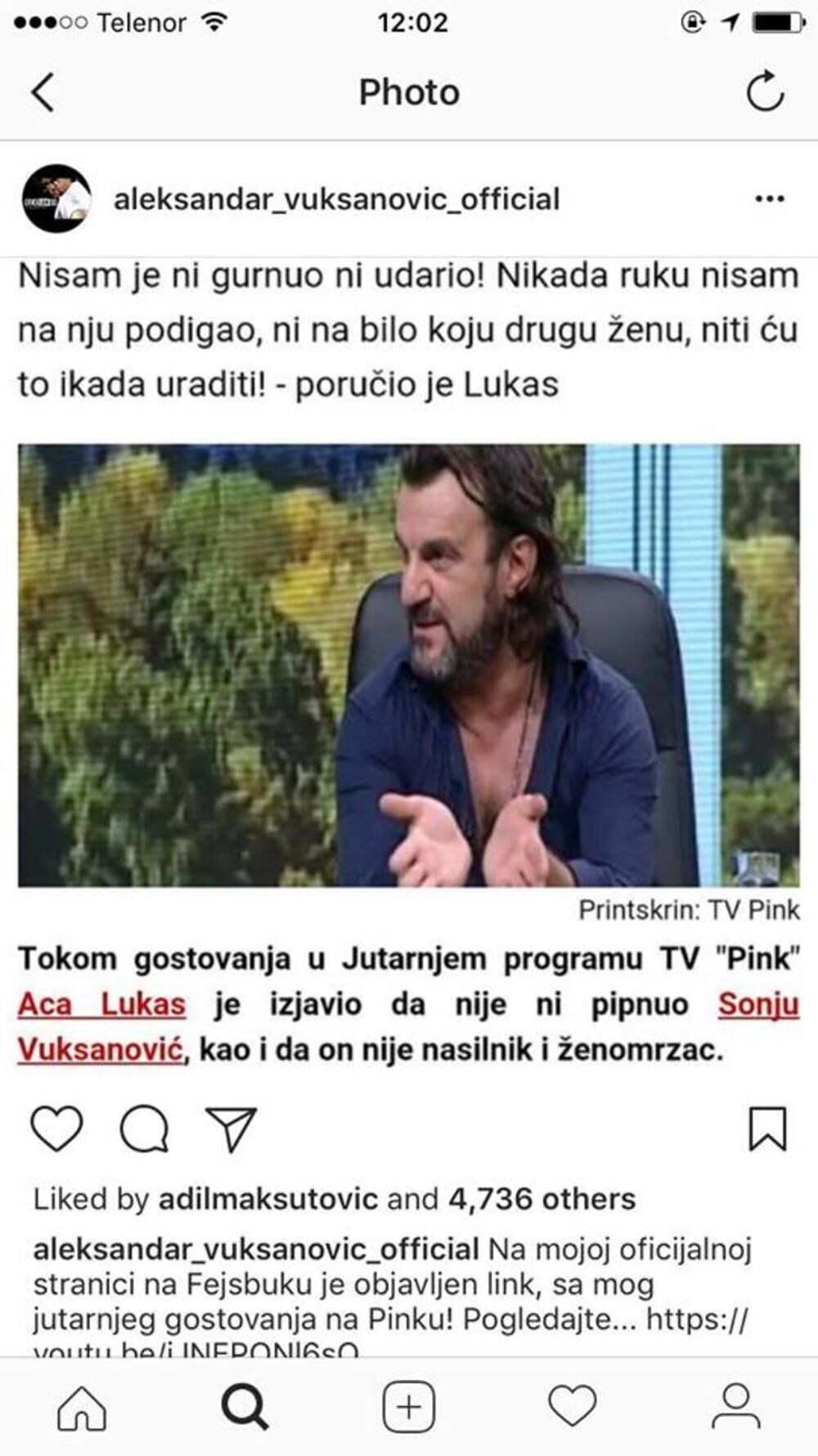 Interesantno je da je Vuksanoviću putem Instagrama podršku pružio i folk pevač Adil Maksutović, koji je pre četiri godine prošao kroz sličnu situaciju, kada ga je nevenčana supruga Ana Ramadanovski, inače ćerka Džeja Ramadanovskog, optužila da ju je pretukao, zbog čega je imao posla sa organima reda.