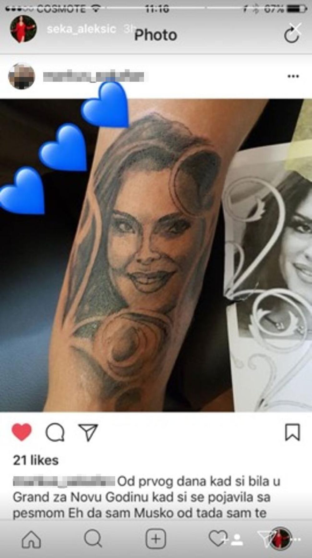 Ona je na svom Instagram profilu objavila sliku koju joj je on poslao, a gde je zapravo njegova ruka sa istetoviranim Sekinim likom. Uz fotku je stajala i poruka, koja na žalost nije mogla cela da se vidi: