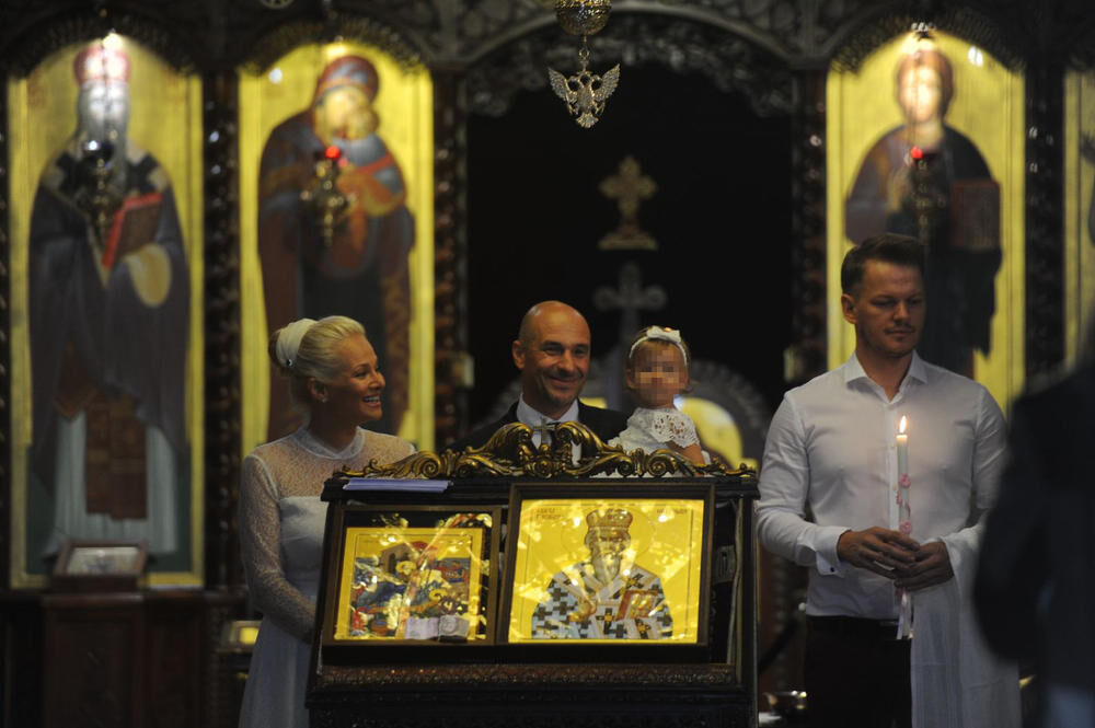 Krštenje je upriličeno u Hramu Svetog Vasilija Ostroškog Čudotvorca na Bežanijskoj kosi, a kum je bio poznati šminker Dušan Lazić.