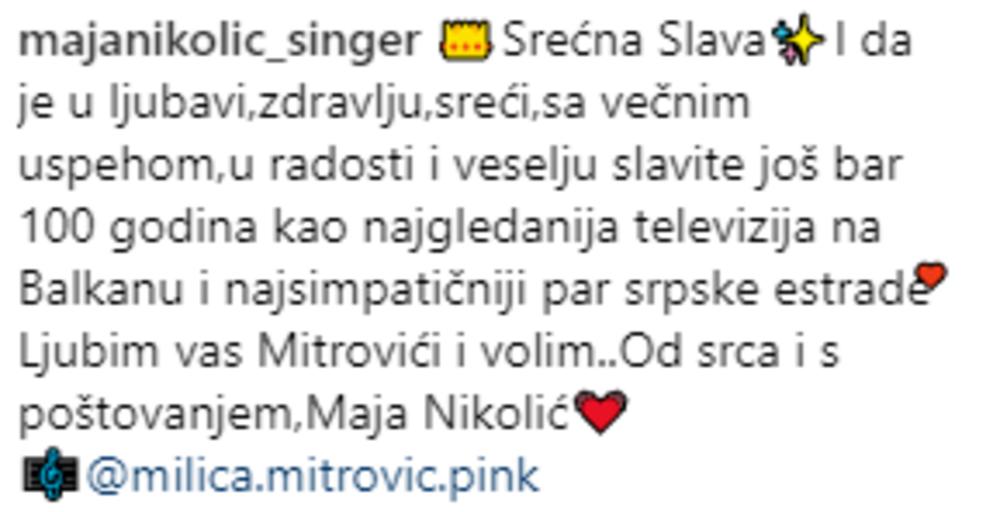 Ovaj video prokomentarisala je Maja Nikolić, poželevši im srećnu slavu i istakavši kako su Milica i Željko za nju najsimpatičniji par srpske estrade.