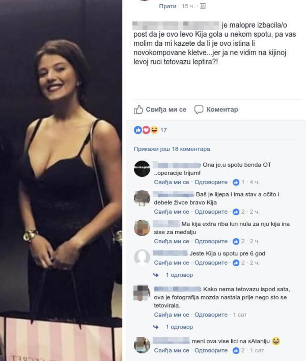 Kija za ovo još nije saznala, te ne može da se brani, ali je narod provalio da je to ona na osnovu tetovaže leptira, koju nosi na ruci. Evo o čemu je reč: