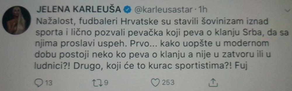 Tim povodom oglasila se Jelena Karleuša i objavila sledeći tvit: