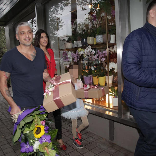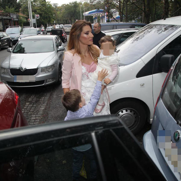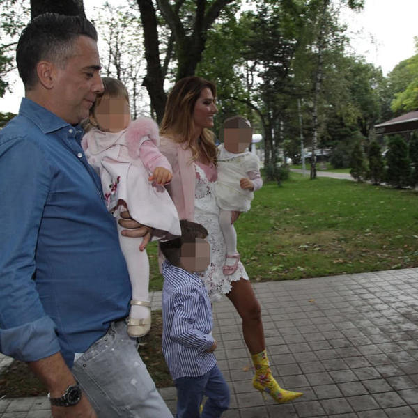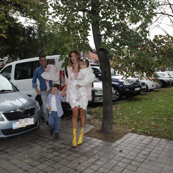 Voditeljka je u roze odevnoj kombinaciji izašla iz auta sa Kostom, a onda su ona i Željko uzeli po jedno dete i ušli u lokal.