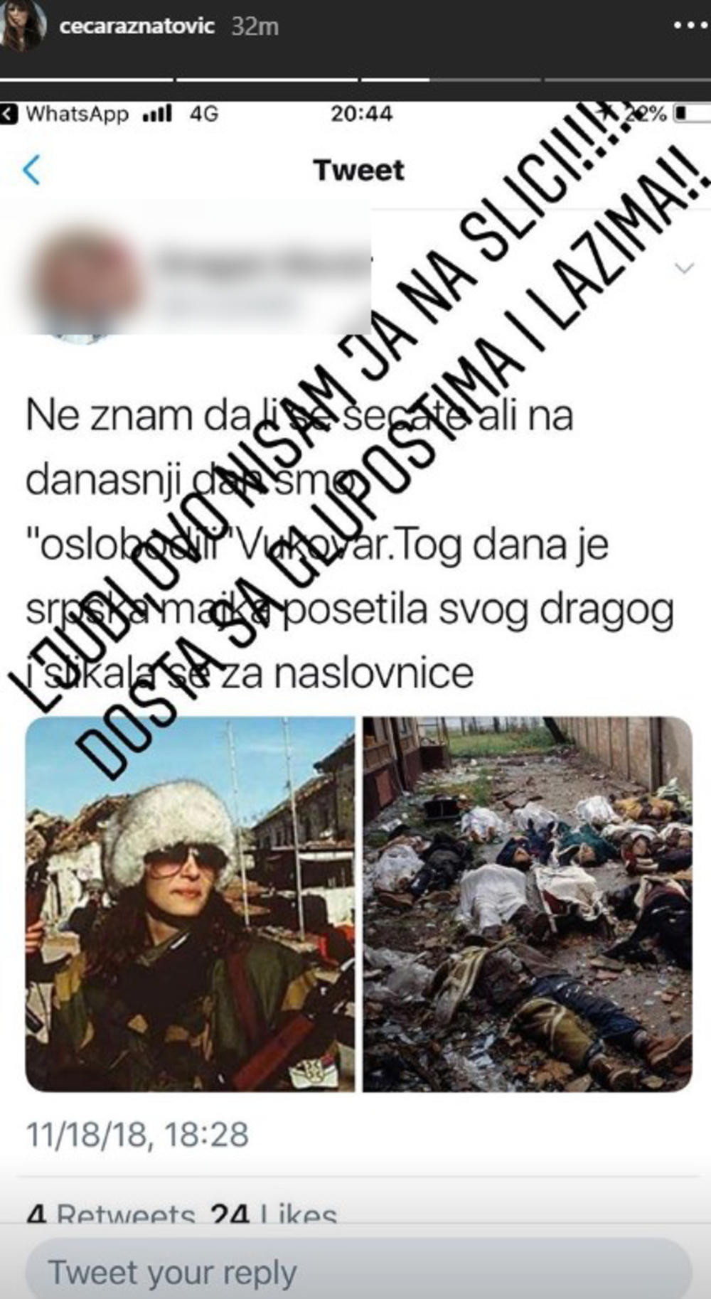 "Ljudi, ovo nisam ja! Dosta sa glupostima i lažima", napisala je Ceca.