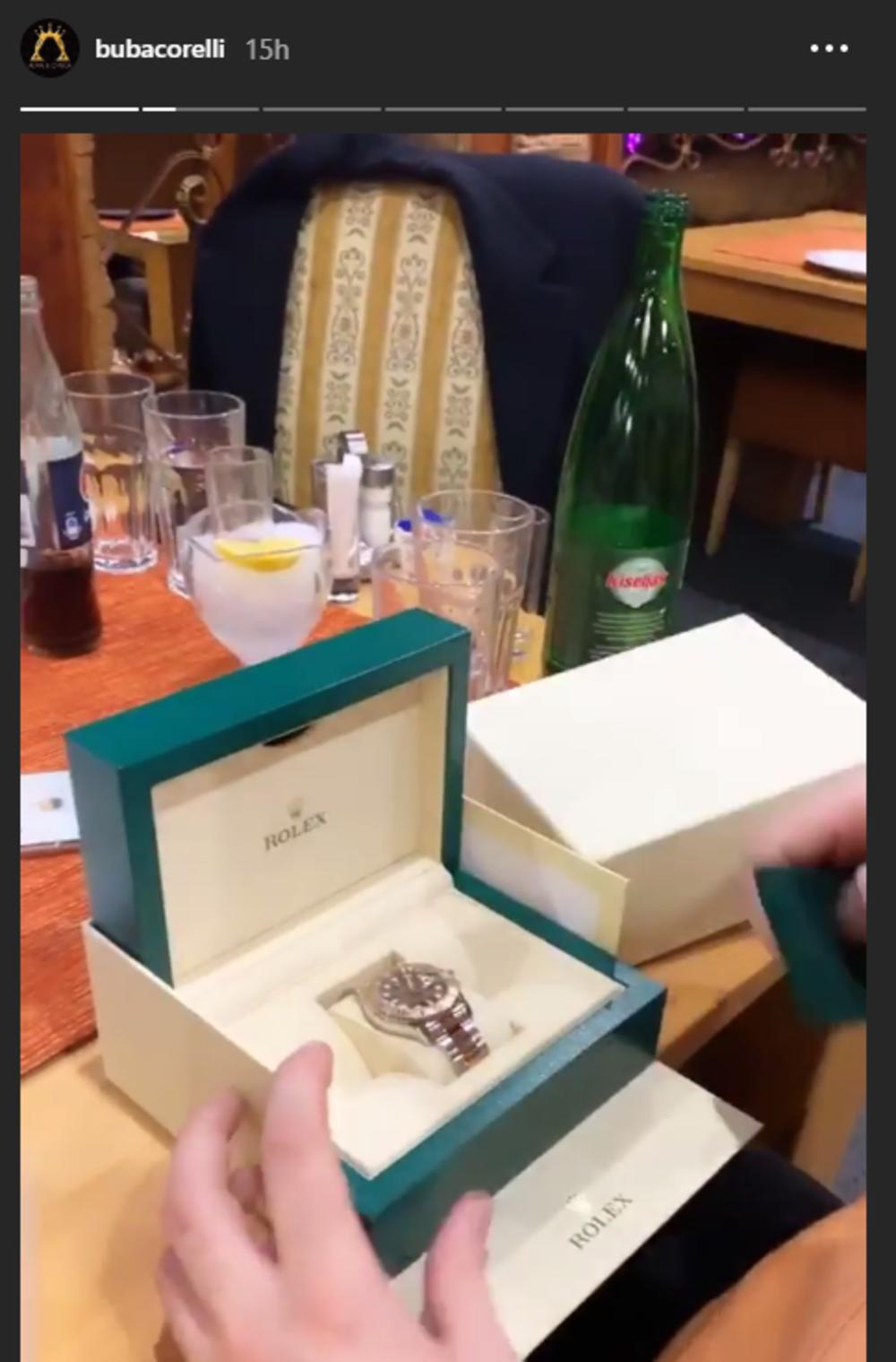 Dok su sedeli za stolom i večerali, Maja je svojim prijateljima i saradnicima, popularnom dvojcu Bubi i Jali, poklonila dva skupocena sata, naravno u pitanju su rolexi, a šta drugo?