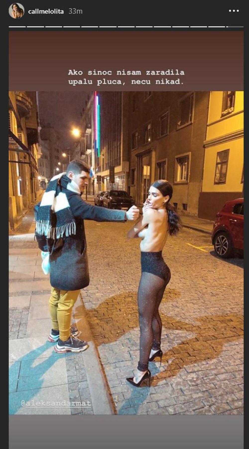 Jovana se fotografisala pa je izašla na ulicu u toplesu. Dok je rukama skrivala potpuno gole grudi prijatelj joj je zapalio cigaretu, a ona je sliku podelila na društvenim mrežama.