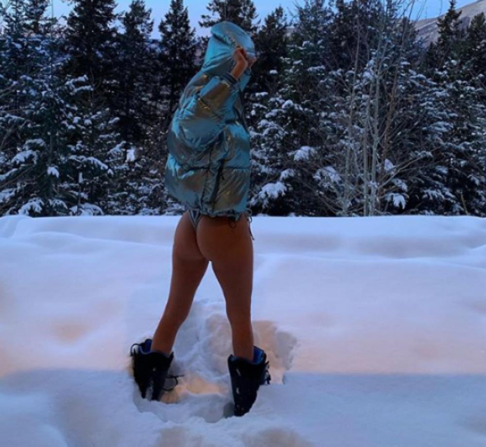 Naime, sestra Kim Kardašijan se skinula u minijaturni bikini po snegu, pozirala, a na jednoj fotografiji pokazala kakvu brutalnu zadnjicu ima.