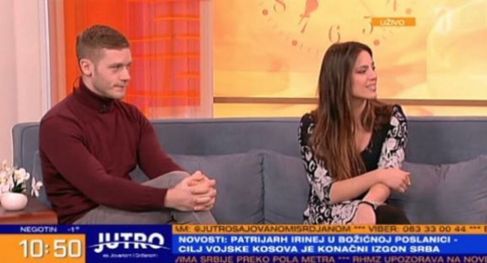 Mladi glumci Miona Marković i Aleksandar Radojičić, glavni protagonisti serije "Žigosani u reketu", bili su gosti Jutarnjeg programa na TV Prva kod voditeljke Jovane Joksimović.