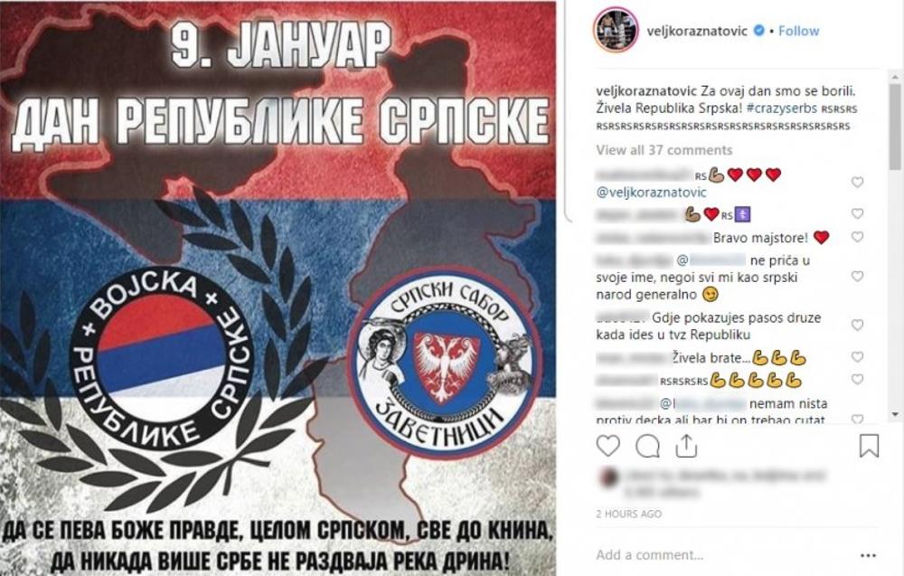 Povodom 27 godina postojanja Republike Srpske, oglasio se Veljko Ražnatović na svom Instagramu.