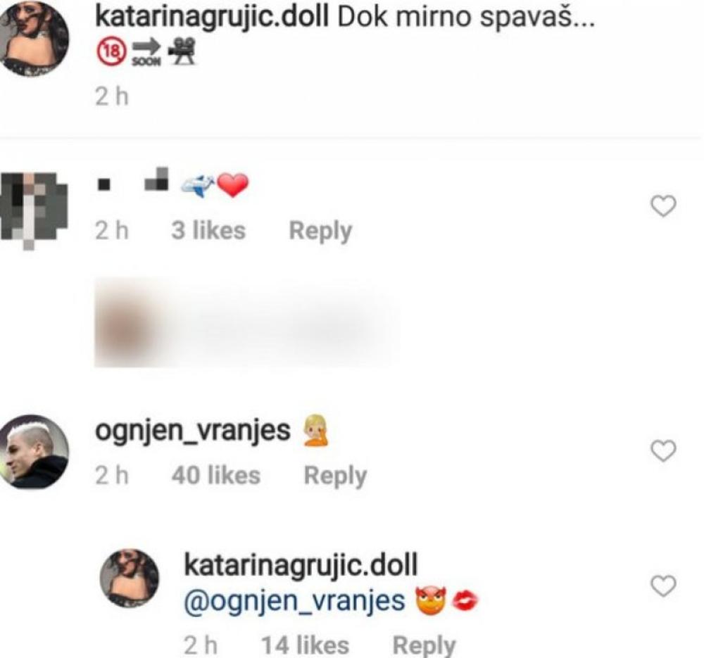 Pored snimka, zanimljiva je bila i njihova kratka konverzacija na istoj društvenoj mreži u kojoj mu je Kaća poslala poljubac.