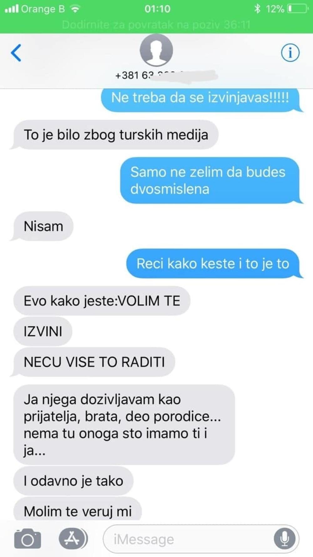 - To je bilo zbog turskih medija. Evo kako jeste: Volim te! Izvini, neću više to raditi. Ja njega doživljavam kao prijatelja, brata, deo porodice... Nema tu onoga što imamo ti i ja, i odavno je tako. Molim te, veruj mi - ubeđivala ga je Karleuša, nakon čega su imali žustriju raspravu i umalo raskinuli.