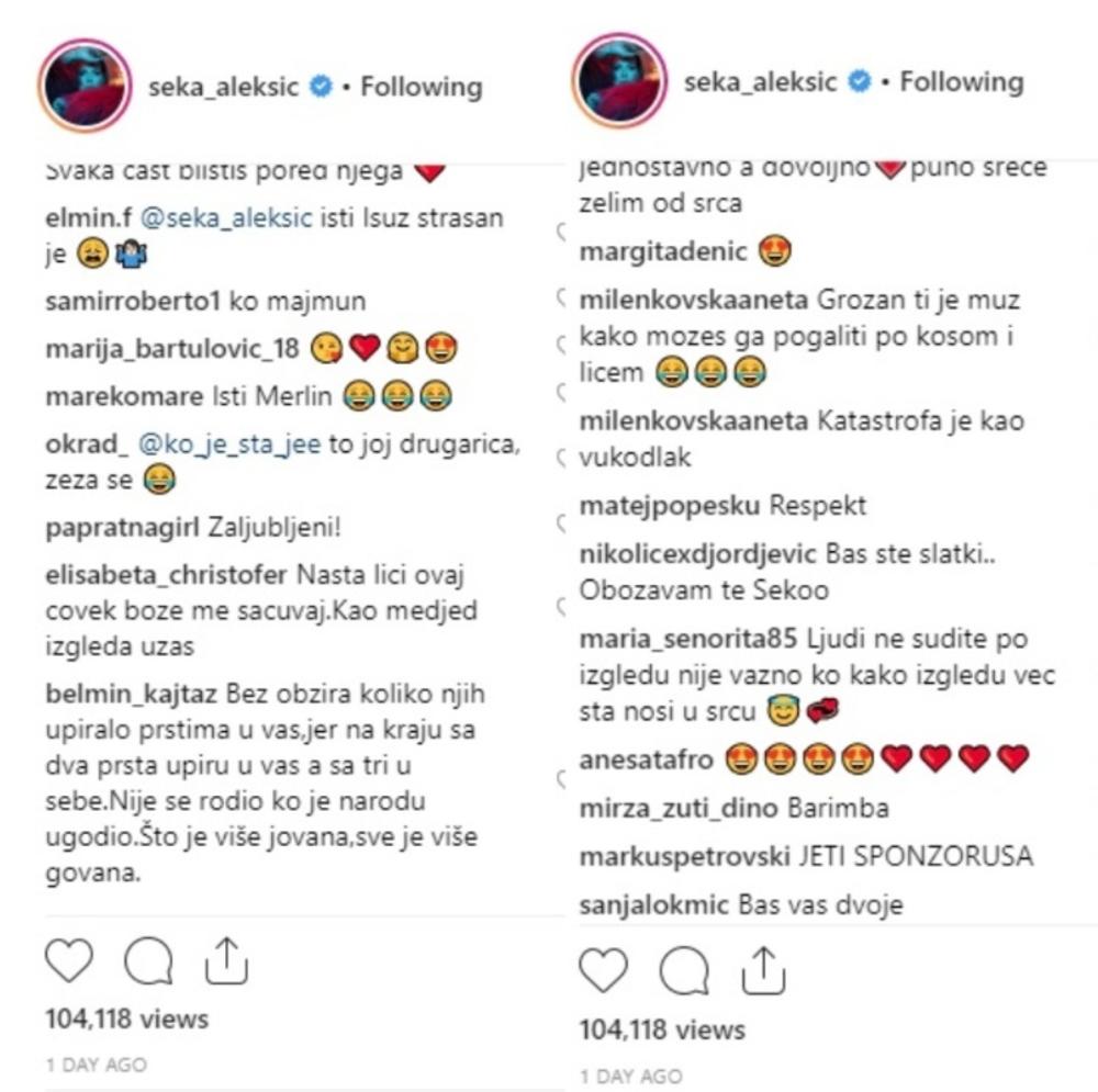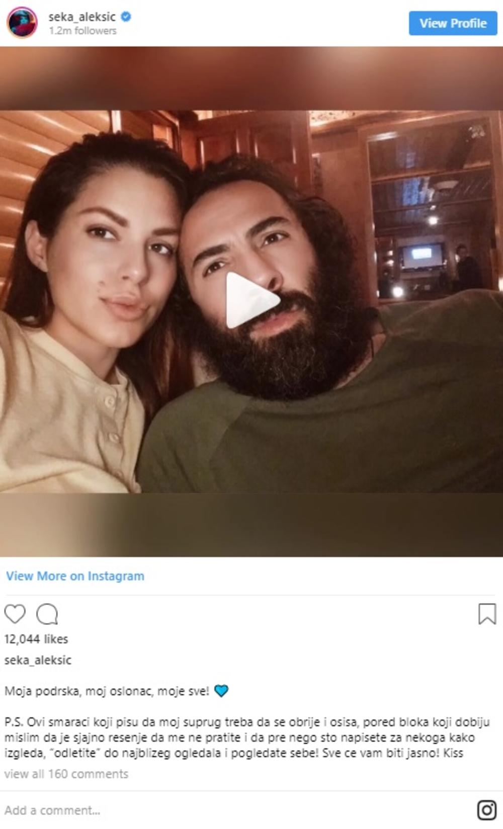 - Moja podrška, moj oslonac, moje sve! P.S. Ovi smarači koji pišu da moj suprug treba da se obrije i ošiša, pored bloka koji dobiju mislim da je sjajno rešenje da me ne pratite i da pre nego što napišete za nekoga kako izgleda, "odletite" do najbližeg ogledala i pogledate sebe! Sve će vam biti jasno - napisala je Seka uz video koji je postavila.
