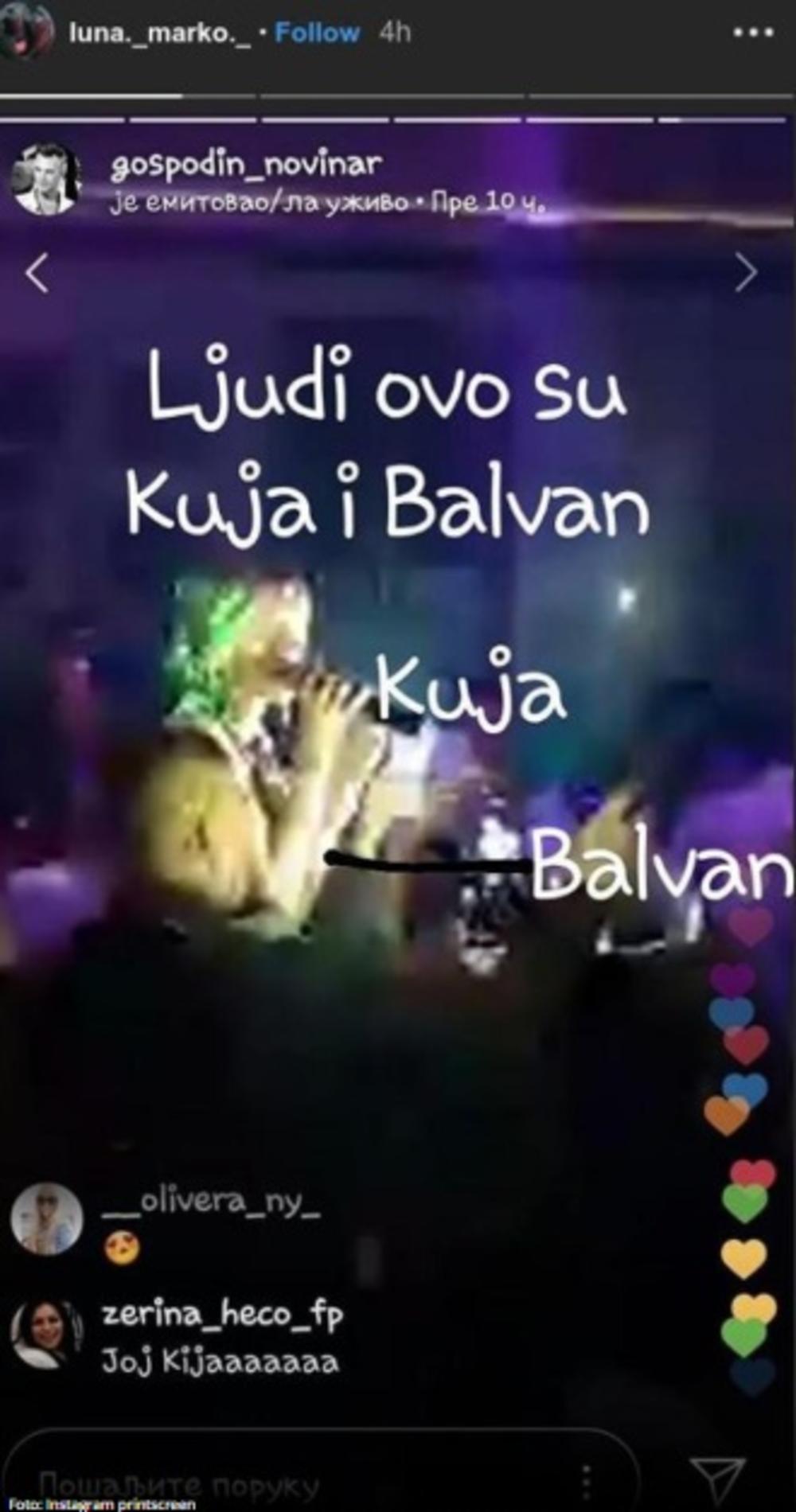 Dok je izvodila pesmu na bini, Milan je sve vreme snimao za svoj Instagram lajv ne bi li dokazao svima koji je prozivaju da stjuardesa ipak ume da peva.