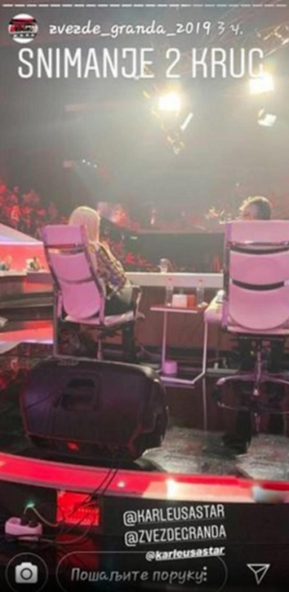 Pevačica se na snimanju žalila Mariji Šerifović i Đorđu Davidu da joj se tresu ruke, a za razliku od prethodnih puta, kada je na snimanja emisija dolazila mahom raspoložena, sada nije želela da komunicira sa predstavnicima sedme sile. Ono što je svima skrenulo pažnju to je da Karleuša nije bila na svom mestu, gde obično sedi, pored Davida i Marije, ona je zapravo uslikana pored Saše Popovića.