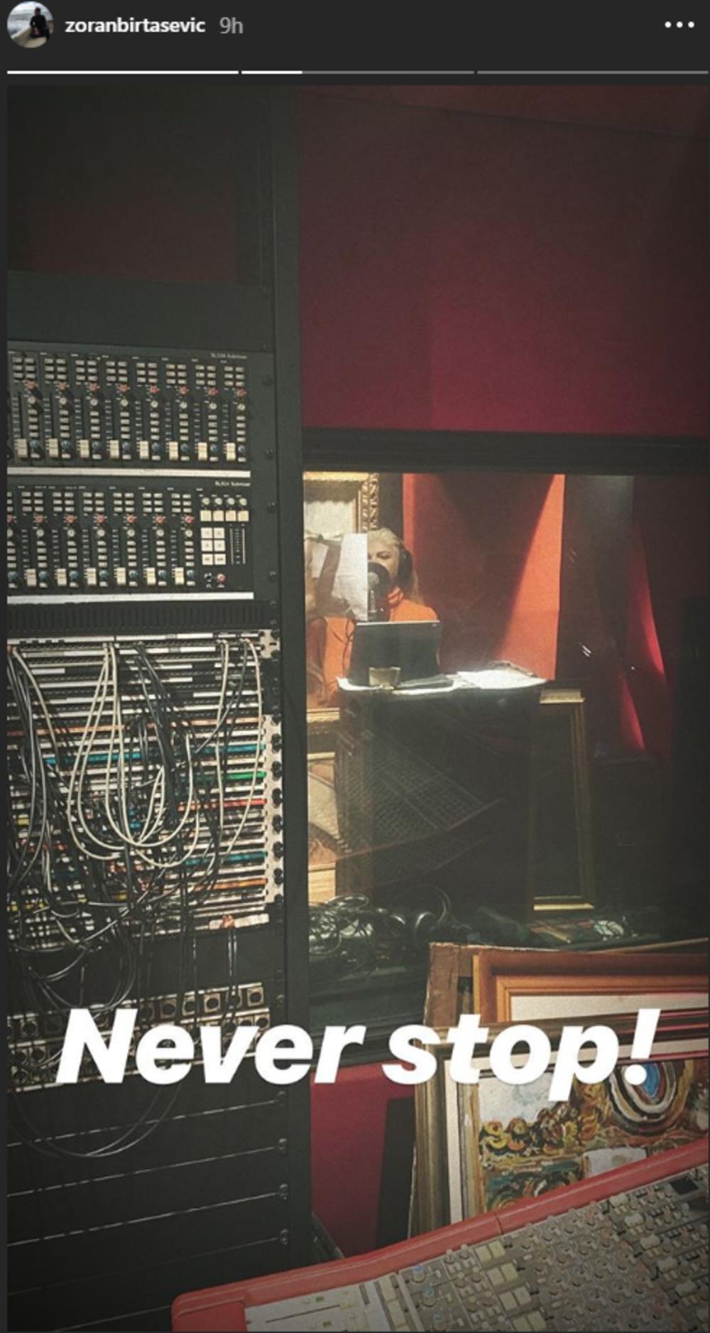 Ipak, vratila se svojim poslovnim obavezama prema Grand produkciji pre samo nekoliko dana, ali i snimanju pesama, ako je sudeći po Instagram objavi njenog PR menadžera i najboljeg prijatelja. Zorana Birtaševića. Na fotografiji je pevačica u studiju, a u opisu objave stoji: "Never stop" (Nema nikad stajanja).