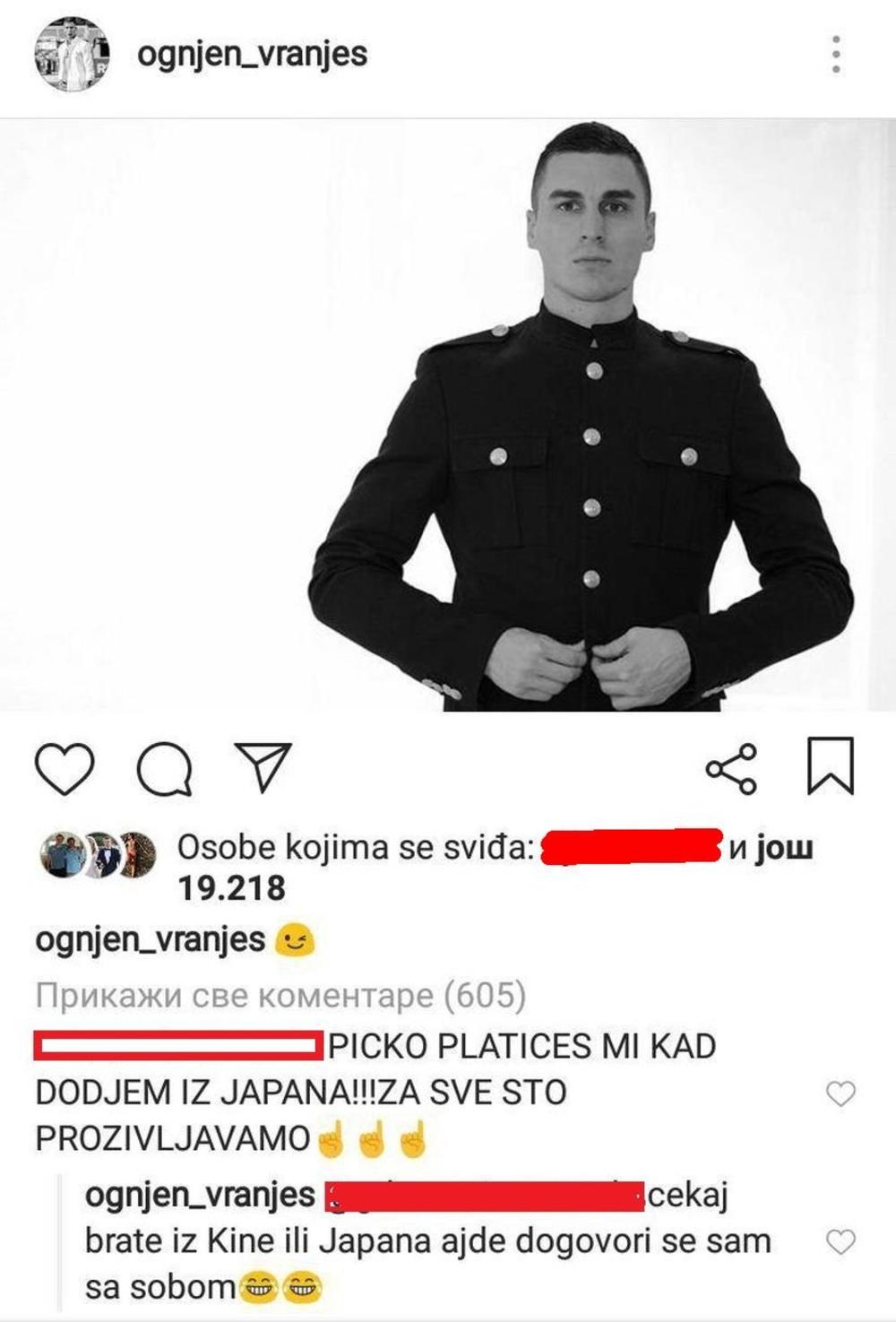 A upravo se to dogodilo kada je Ognjen na Instagramu postavio svoju fotografiju ispod koje se pojavio komentar: