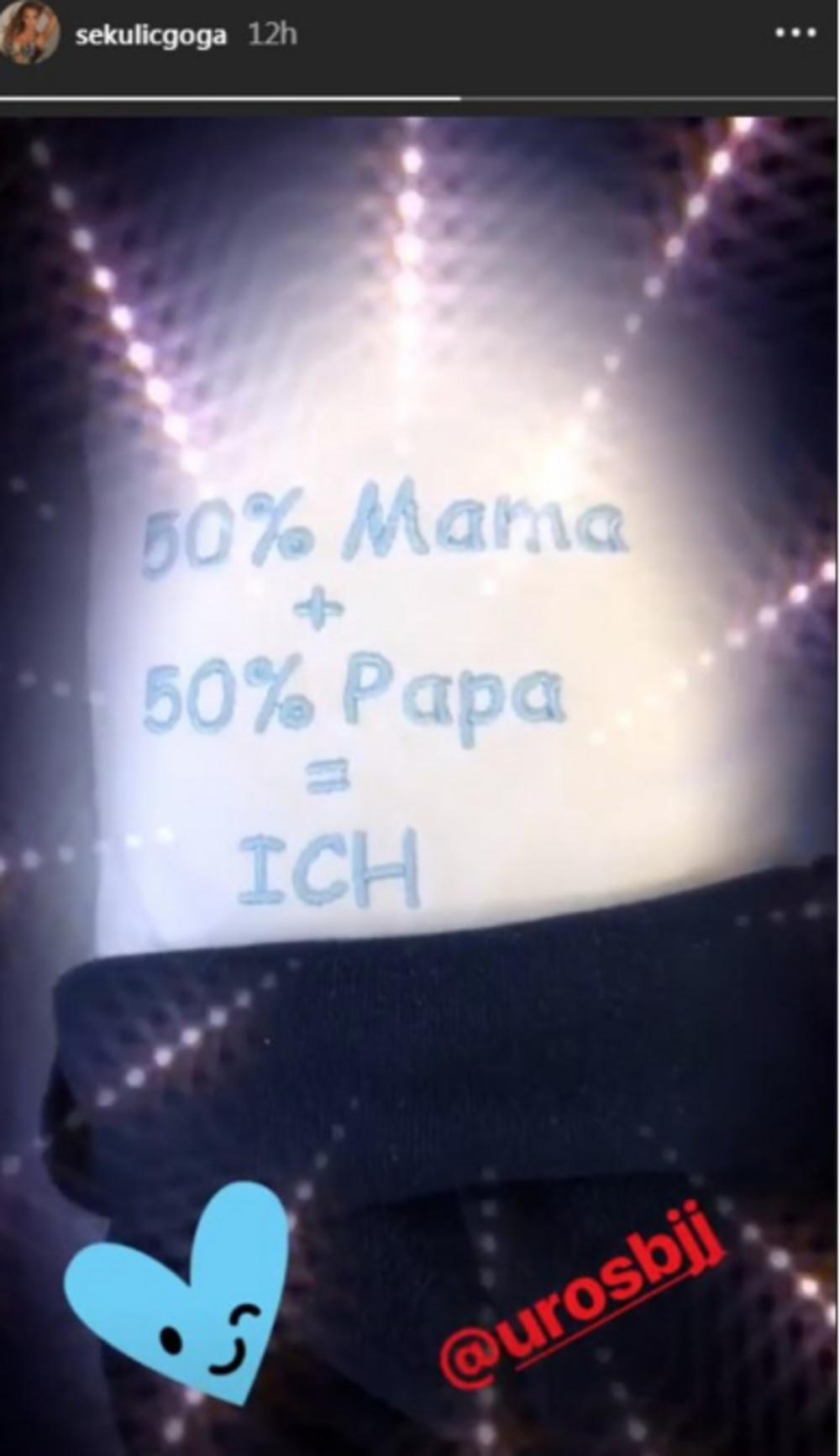 - 50% mama + 50% tata = ja - napisala je Goga na nemačkom jeziku.