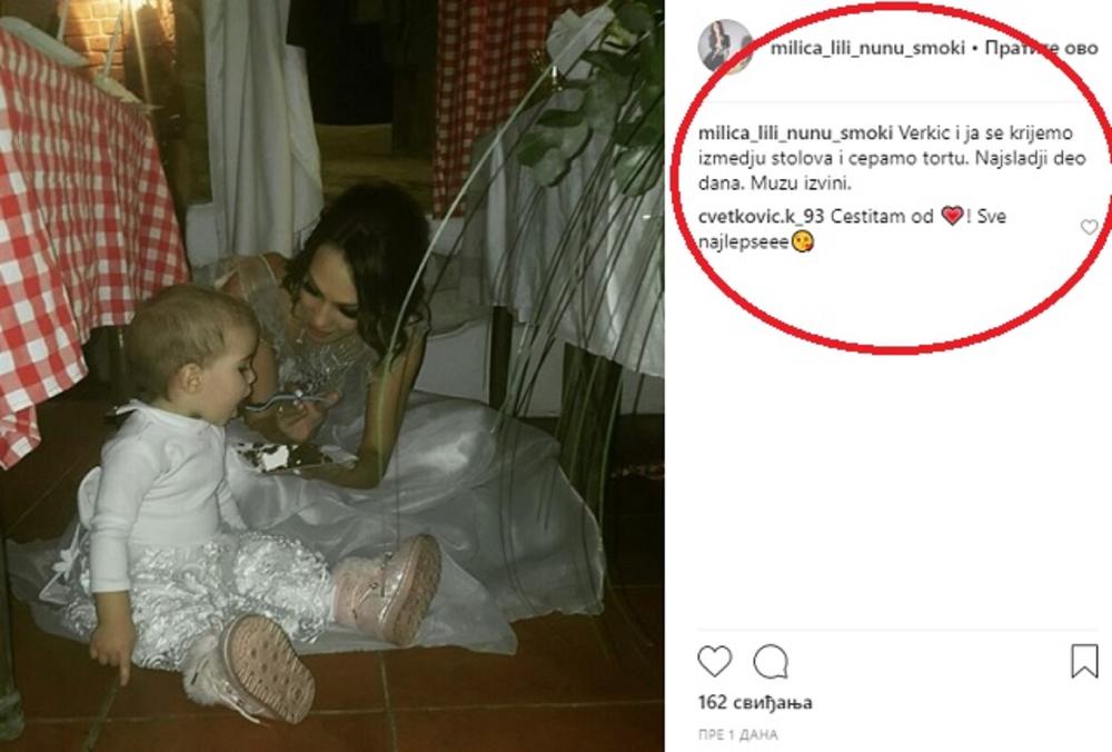"Verkić i ja se krijemo između stolova i cepamo tortu. Najslađi deo dana. Mužu izvini" - napisala je ona u komentaru pored fotografije na kojoj sa jednom devojčicom sedi na podu, dok malenu gošću hrani tortom.