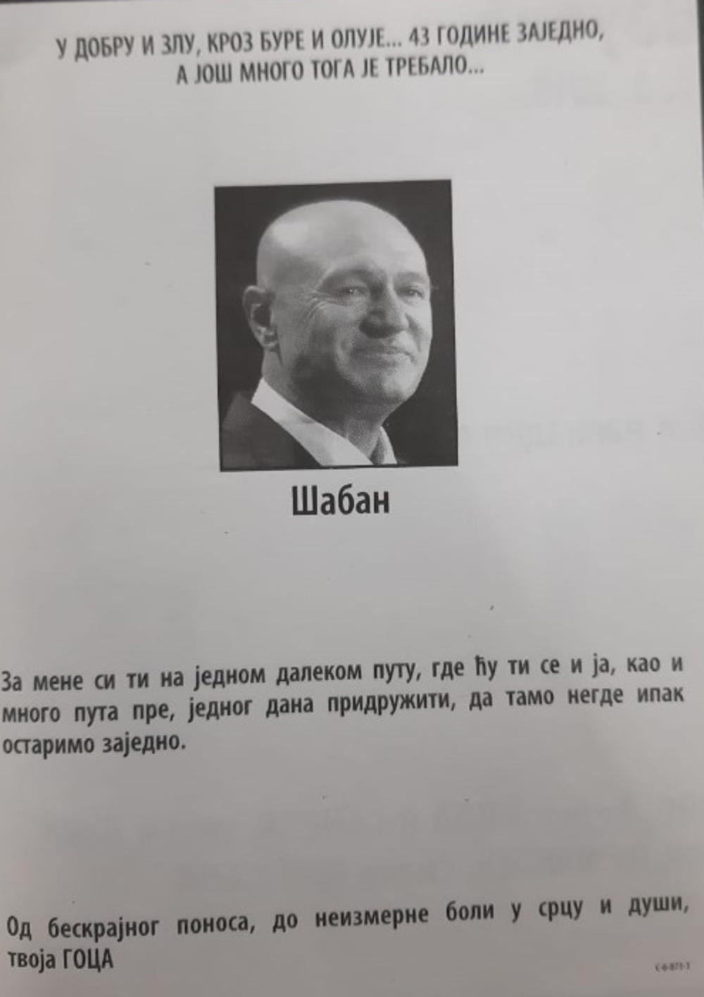 Supruga kralja narodne muzike, Šabana Šaulića, Gordana, oprostila se od svog voljenog muža koji je tragično izgubio život u saobraćajnoj nesreći.