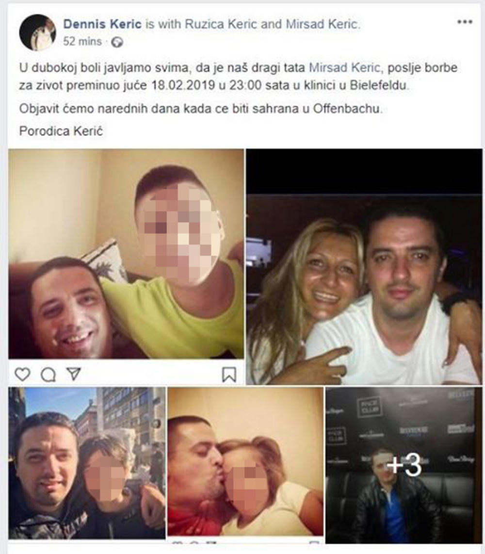 U dubokoj boli javljamo svima da je naš dragi tata Mirsad Kerić, posle borbe za život preminuo juče, 18. 02. 2019. godine u 23 sata u klinici u Belefildu. Objavićemo narednih dana kada će biti sahrana u Ofenbahu. Porodica Kerić", piše u zvaničnom saopštenju porodice.