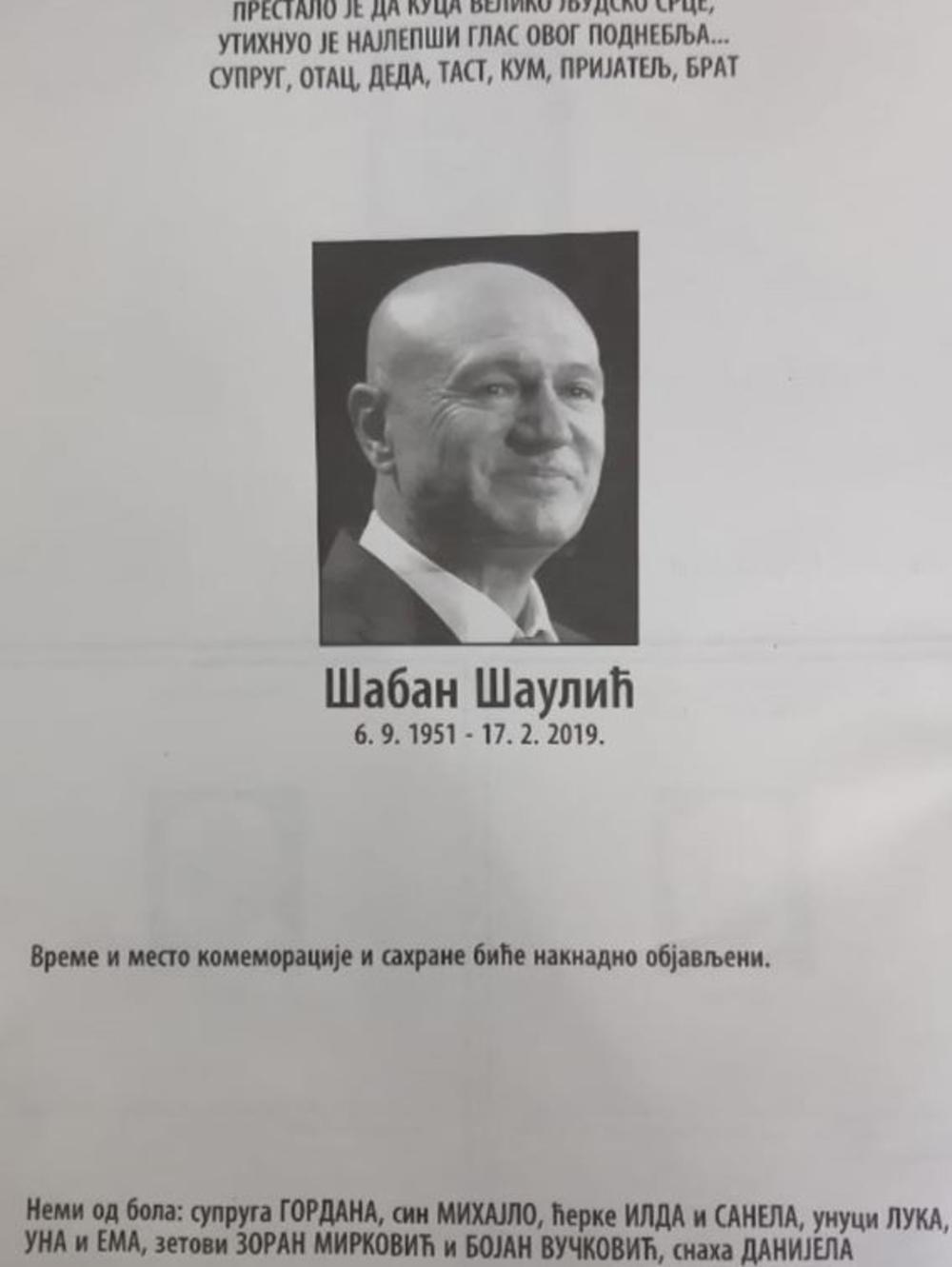 -Sahrana je planirana za petak, ali tačne informacije možeme da očekujemo tek sutra kada porodica bude preuzela telo. - rekao je izvor blizak porodici Šaulič za Espreso.co.rs.