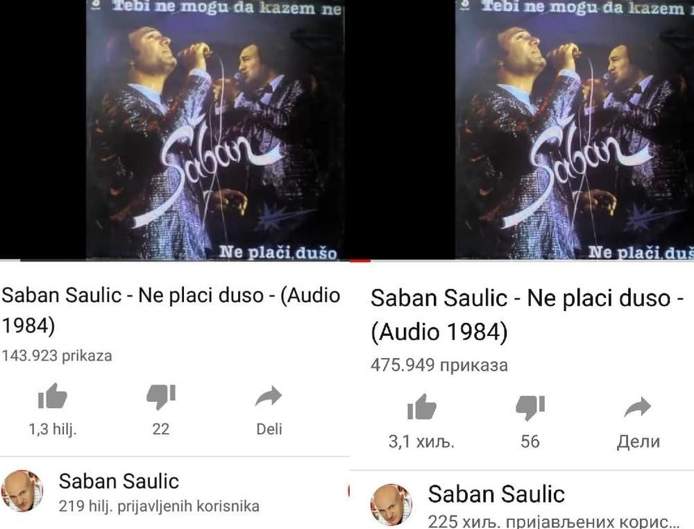 Ona je ranije imala 143.000 pregleda, a u subotu je osvanula sa blizu pola miliona slušanja. Numere poput "Danima te čekam", "Tebe da zaboravim", "Šadrvani" i "Sine, sine" takođe su dobile više na slušanosti, odnosno u proseku je to oko 100.000 pregleda za samo jedan dan. Šaulićevi vanvremenski hitovi "Dođi da ostarimo zajedno", "Meni je sreća s tobom obećana" i mnogi drugi takođe su zabeležili rast popularnosti kod Jutjub publike.