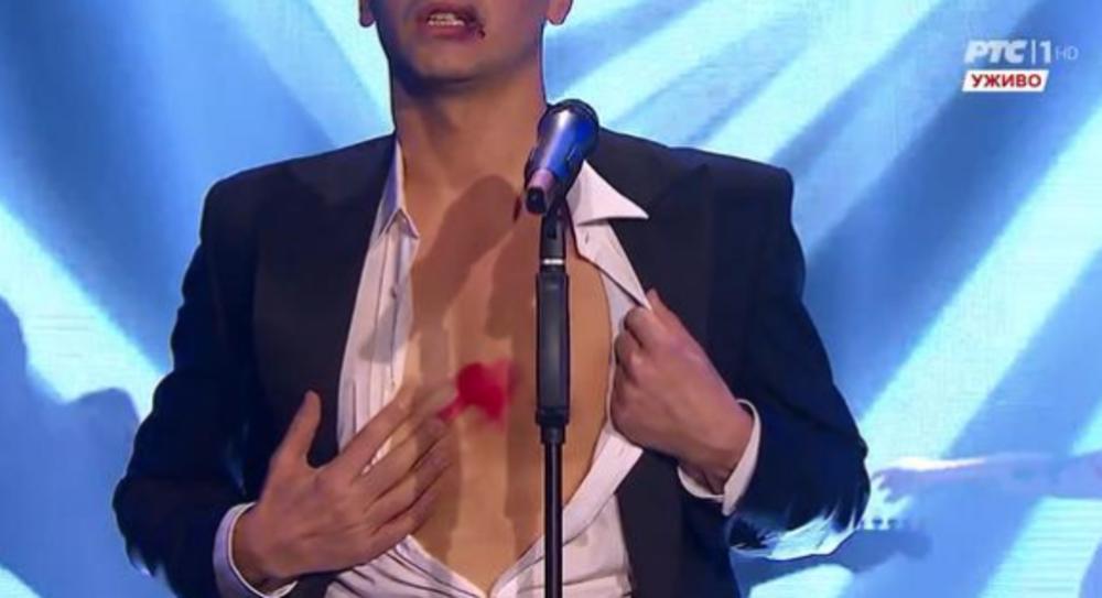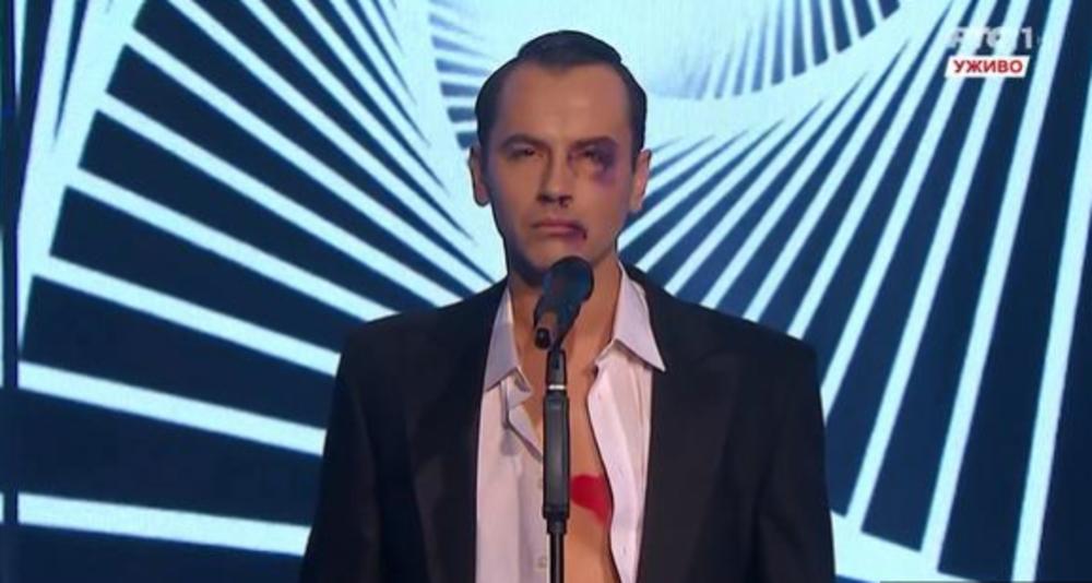 Dušan Kaličanin je iznenadio nastupom, a pojavio se sa šminkom na telu, koja je podrazumevala da izgleda kao da ima modrice, te da lije krv, što je mnoge ostavilo bez teksta.