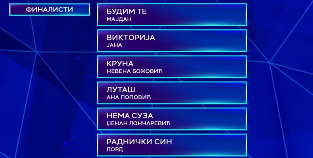 Podsetimo, kandidati koji su nakon prvog polufinala prošli u finale su: