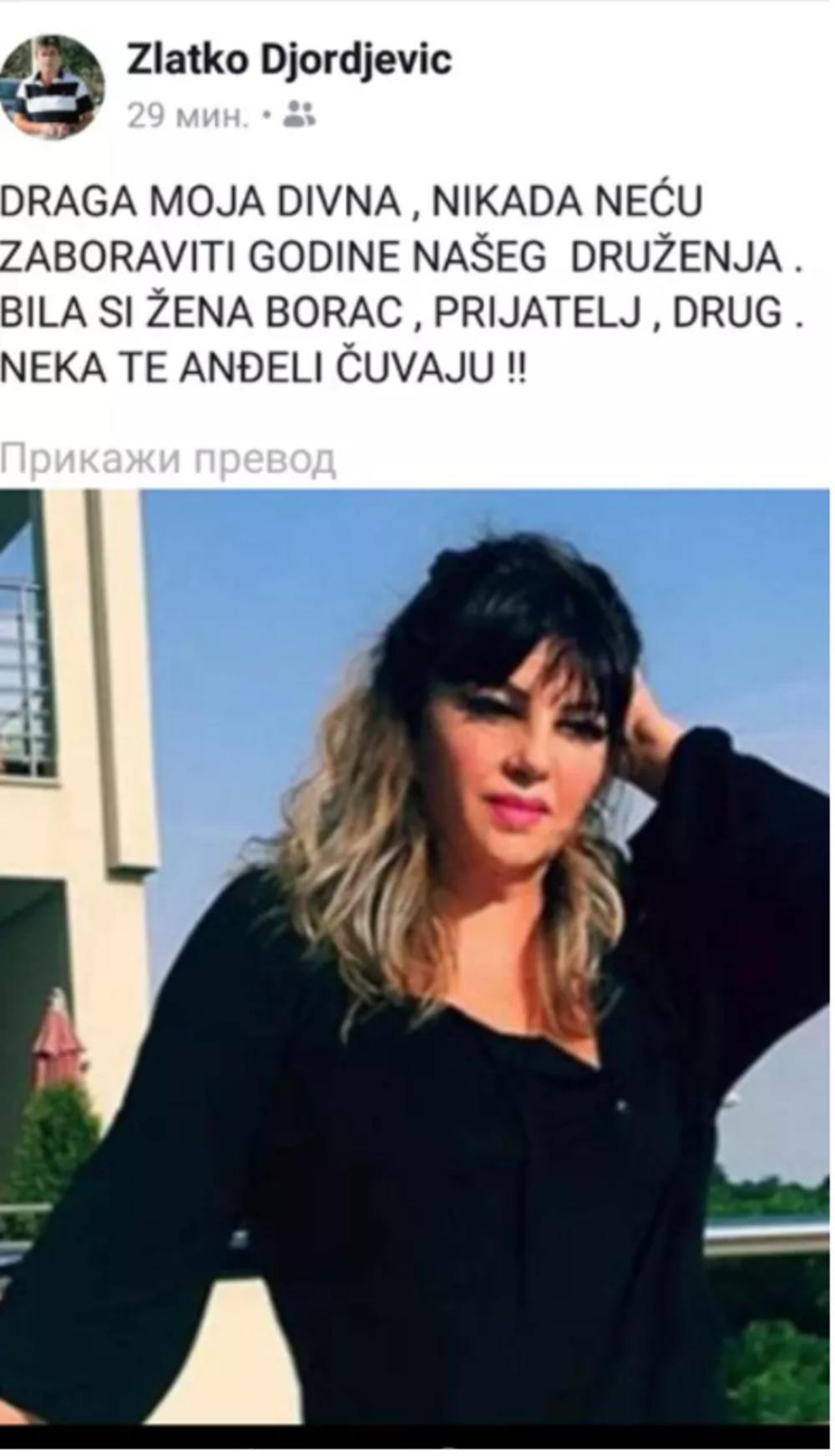 - Poslednji put smo se čuli kad sam ja imao tešku upalu pluća, ona me zvala i tešila me: "Zlaki, nemoj ništa da se plašiš, nije to ništa strašno. Moraš da uradiš bronhoskopiju, ali u totalnoj anesteziji"... Znao sam da je bolesna, ali ne toliko. Još ne mogu da dođem sebi. Divna je bila dobar čovek i drugar. Sa njom je čovek mogao da razgovara i ozbilno i da se proveseli u kafani. Družila se često ranije sa Nadom i sa mnom, često smo umeli da se zajedno proveselimo - rekao je Đorđević za Pink.rs.