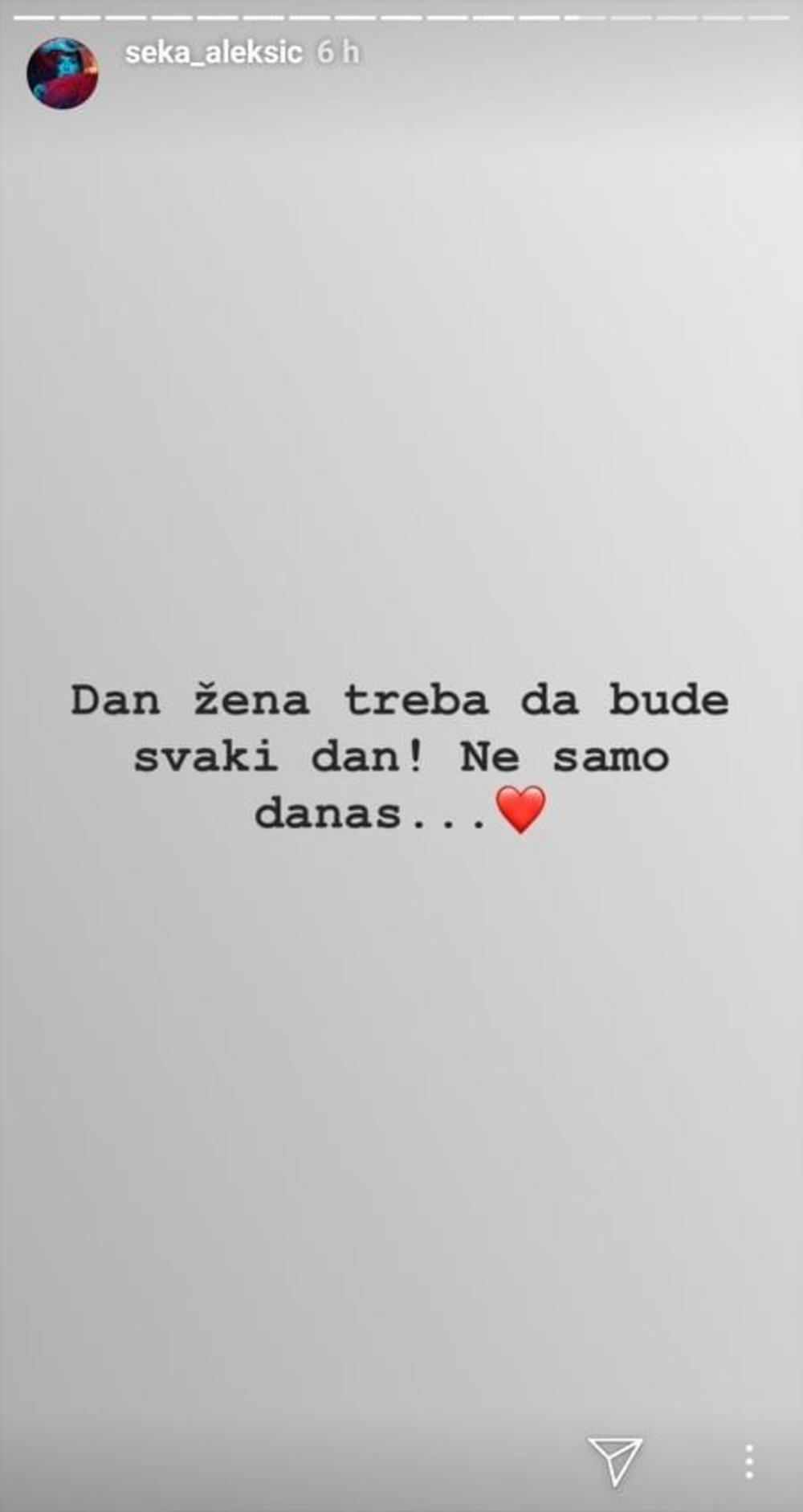 "Dan žena treba da bude svaki dan! Ne samo danas..." poručila je Seka Aleksić.