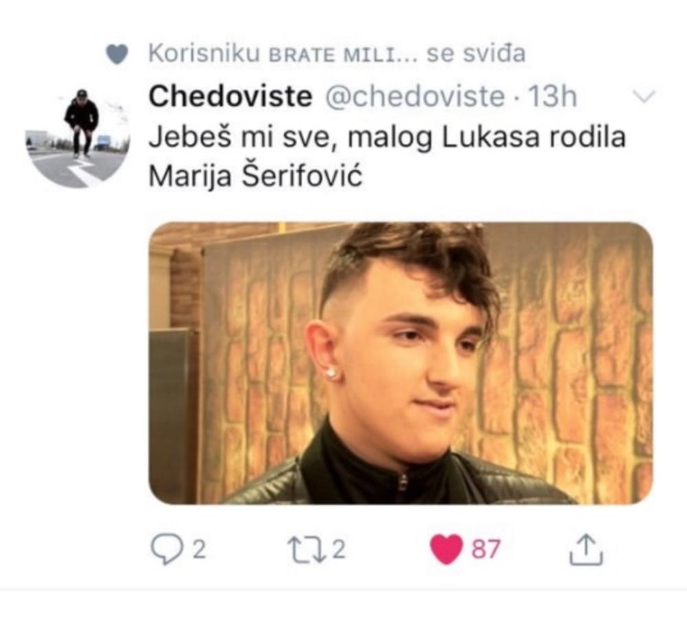 "Je*eš mi sve, malog Lukasa rodila Marija Šerifović", piše u komentaru jednog tviteraša.
