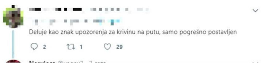 "Modni incident", "Ovakav neukus nisam videla godinama", "Deluje kao znak upozorenja za krivinu na putu, samo pogrešno postavljen", samo su neke od komentara.