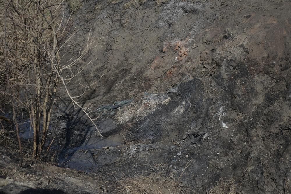 Na mestu nesreće, u Surčinu, Donje polje vide se tragovi nesreće. Bandera je oborena, trava, zbog požara, potpuno je izgorela, delovi branika, auspuh...