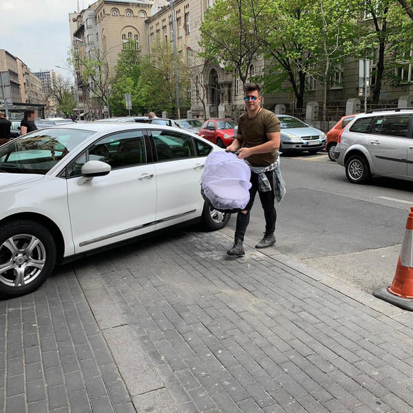 Miroljub Aranđelović Kemiš je stigao ispred Narodnog fronta sa zetom Milošem Vujanovićem, kako bi unuku i ćerku izveo iz porodilišta.