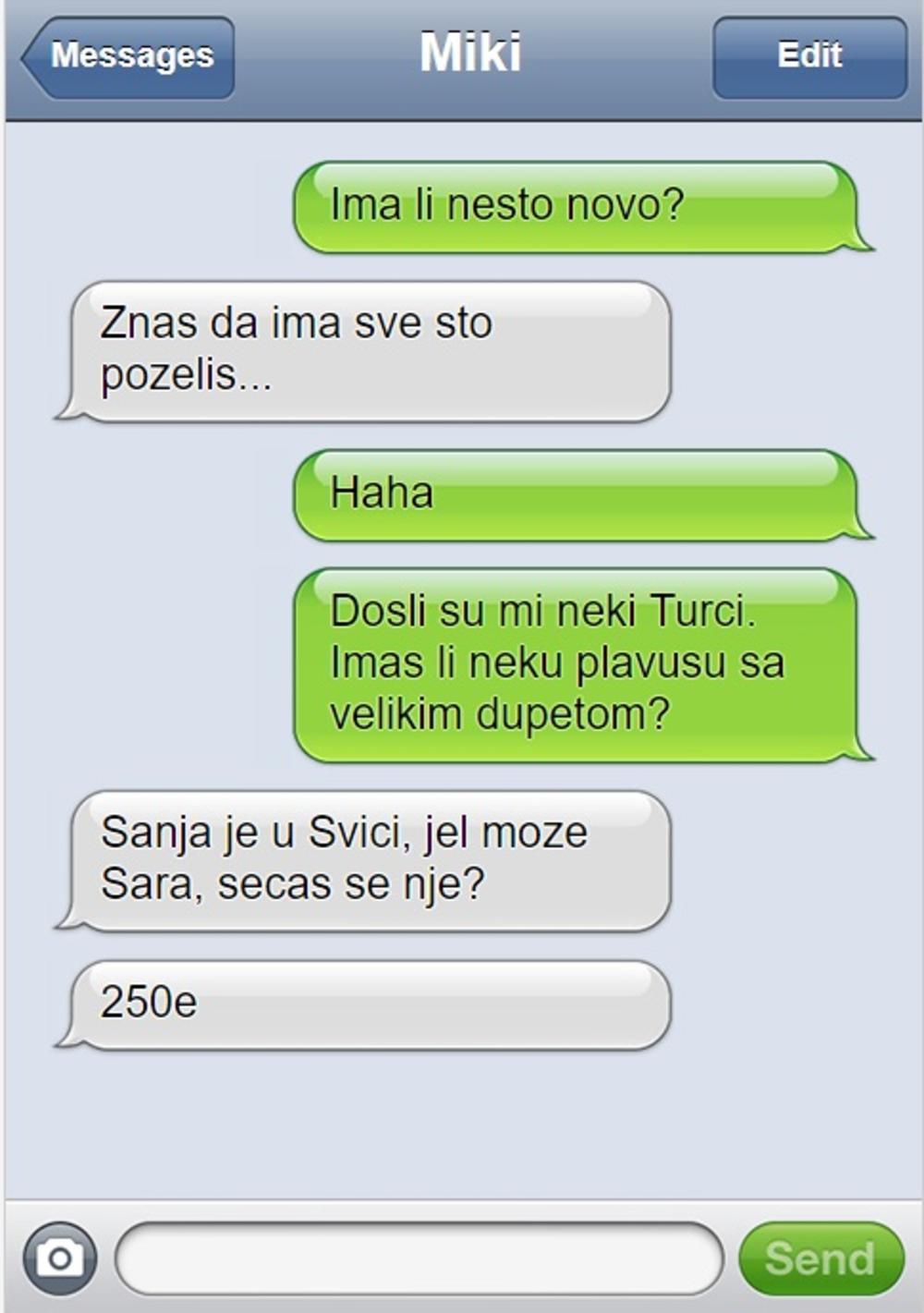 Sanja i Božana imaju poseban status, može se reći da su Mihajlove miljenice. Sanja za njega radi već dve i po godine, a Božana je u Mihajlovom katalogu duže od pet godina. Njih preporučuje posebnim mušterijama, koje dobro plaćaju i one su bile izabrane za ovaj put. Inače, ovo nije jedina destinacija na koju je slao devojke, išle su u Albaniju, na Maldive, u Barselonu, Sen Trope", kaže izvor.