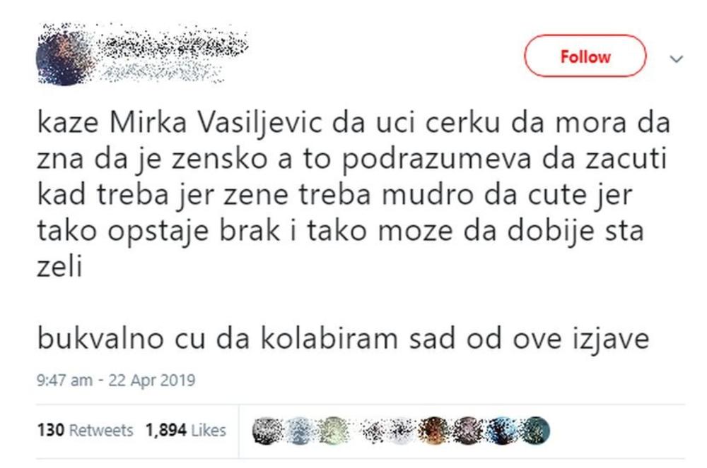 Naime, Mirka je naglasila da njeno dete mora da zna da je žensko, te da to podrazumeva ćutanje jer onda brak može da opstane i ona može da dobije šta god želi (?!)