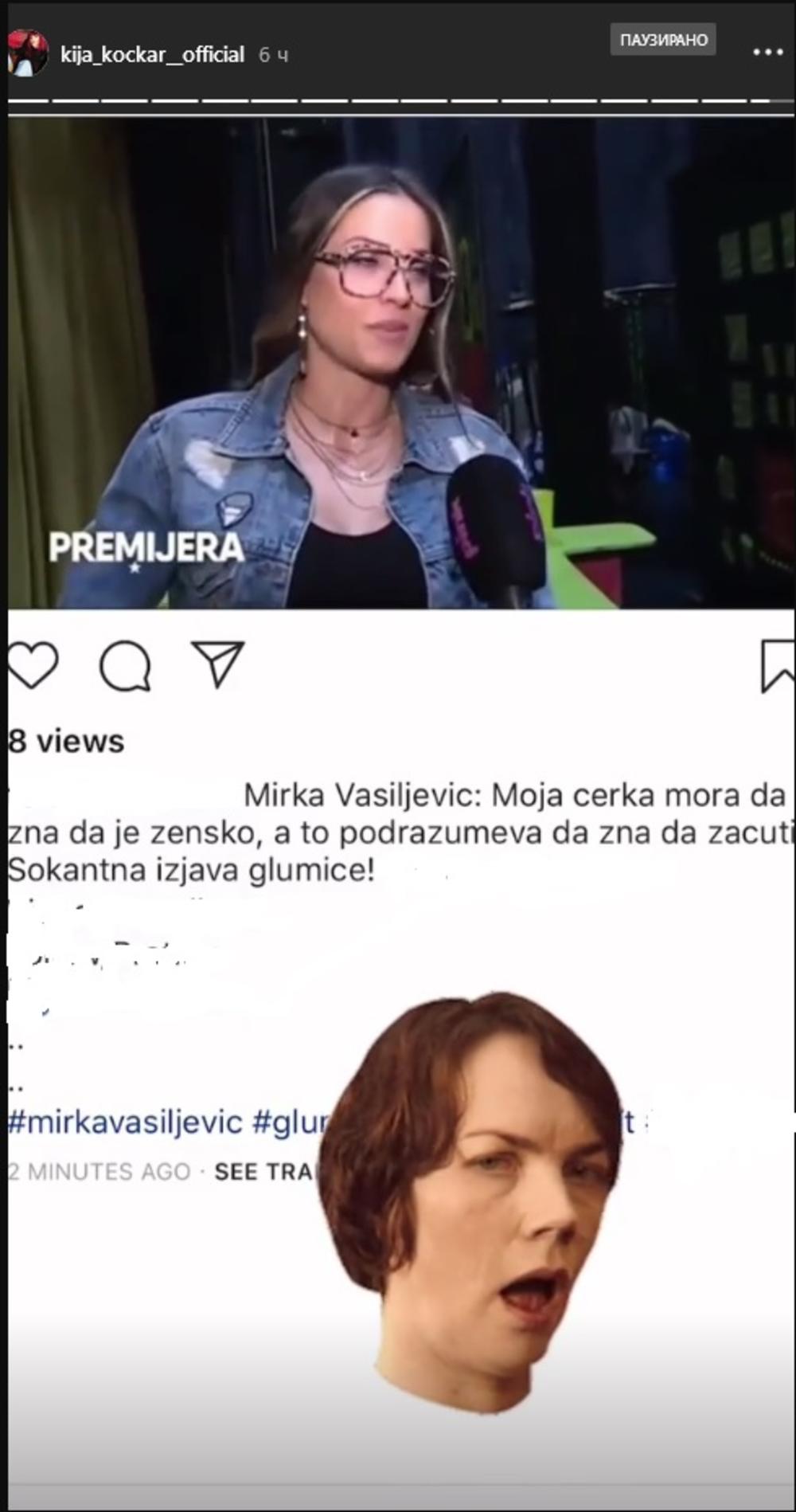 Kristina Kockar često iznosi svoje stavove u vezi sa aktuelnim dešavanjima, tako je bilo i ovog puta. Naime, bivša zadrugarka je na svom Instagramu prozvala glumicu Mirku Vasiljević.